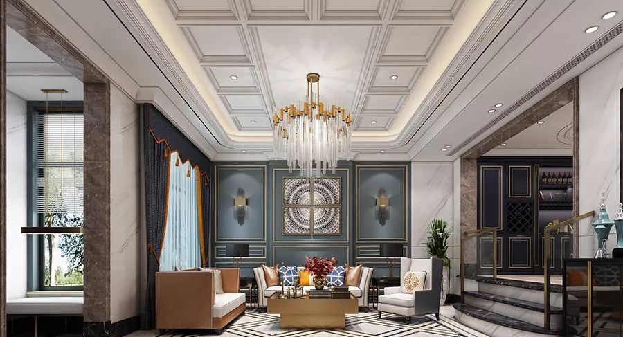 客廳浪漫又不失溫馨的造型,高品質(zhì)的家具結(jié)合墻面大理石的紋理,再加上金屬線條的點(diǎn)綴,體現(xiàn)出現(xiàn)代風(fēng)格的可塑性,同時(shí)又不失品質(zhì)感的設(shè)計(jì)語言。整體空間使用米色和藍(lán)灰色為主色調(diào),流蘇狀的吊燈唯美又有格調(diào),加上暖暖的燈光,使整個(gè)空間有種輕奢高貴的感覺。